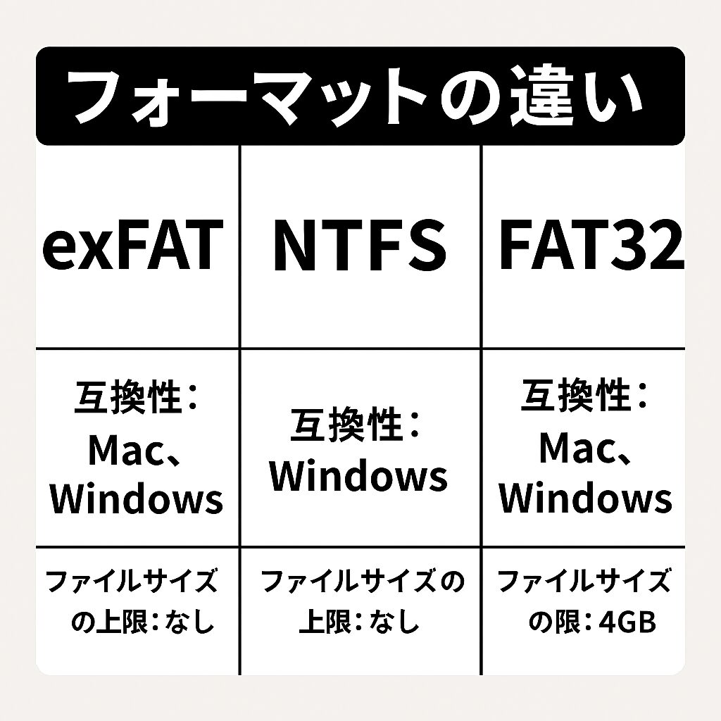 WindowsPCを使っていたときは外付けハードディスクがにデータを入れていましたが、フォーマットの形式によってはMacでは読み書きができなかったり、書き込みができなかったりするそうです。