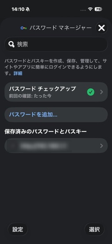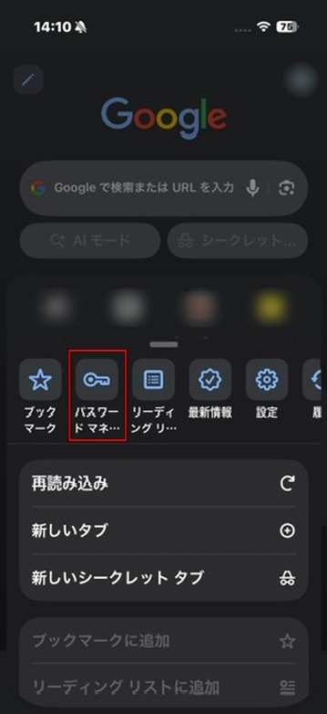 Chromeからパスワードマネージャーをタップする。