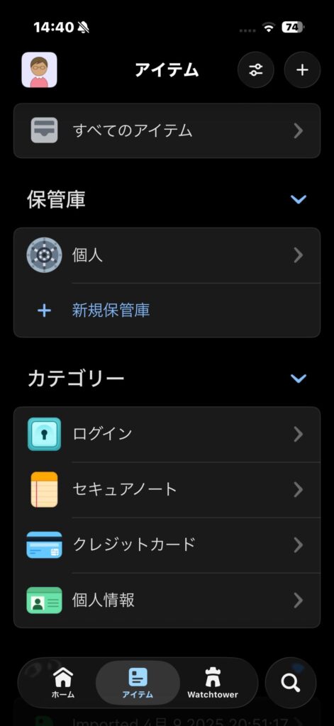 なお、パスワードの他に、セキュアノート(メモ)、クレジットカード情報、個人情報などをアプリに保存することもできます。